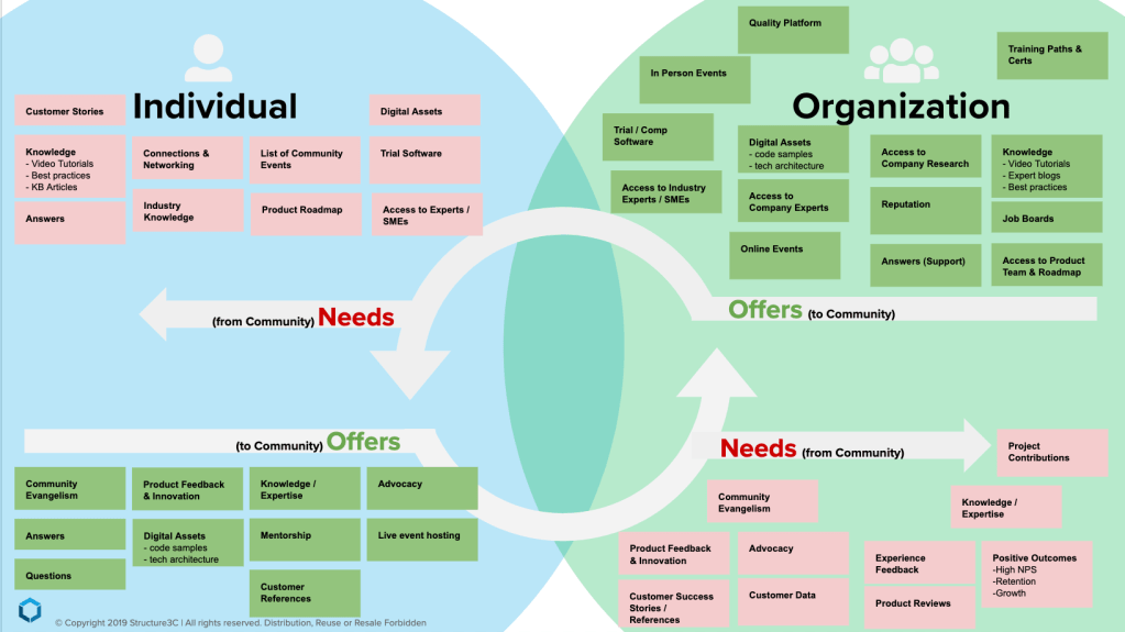 There is an unfortunate tendency to view Customer communities as “cost saving” vs “value producing”. This thinking leads to strategies and outcomes that fail to realize the full value of customer communities, and is rooted in a long standing dependence by some companies on customer support communities. In extreme examples, this sort of strategy breeds resentment with valuable customers and leads to a dangerous dependence on an unsustainable resource. When the Corporate mindset shifts to “value producing”, the aperture of community strategy widens to a rich set of possibilities: community advocacy programs, open innovation, peer to peer mentoring, complex content sharing, customer co-design and much more.